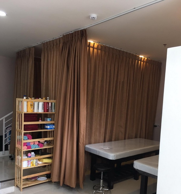 Với các spa có nhiều giường dịch vụ trong cùng một không gian, vách ngăn giường bằng rèm là giải pháp thông minh, tiết kiệm chi phí nhưng vẫn đảm bảo sự riêng tư cho từng khách hàng.