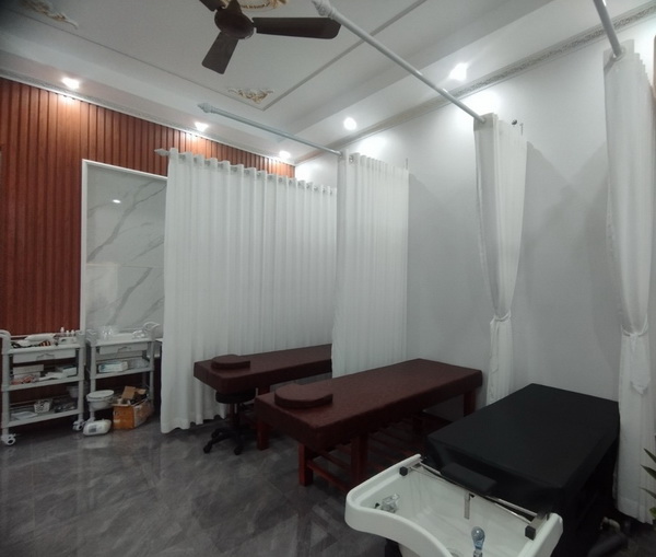 Đối với spa có nhiều giường trong cùng một phòng, vách ngăn giường bằng rèm là giải pháp tối ưu: